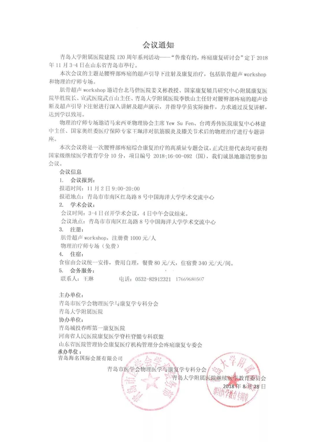 ★本次会议将是一次腰臀部疼痛综合康复治疗的高质量专题会议,正式注册代表均可获得国家级继续医学教育学分10分,项目编号 2018-16-00-092 (国),我们诚恳地邀请您参加会议。