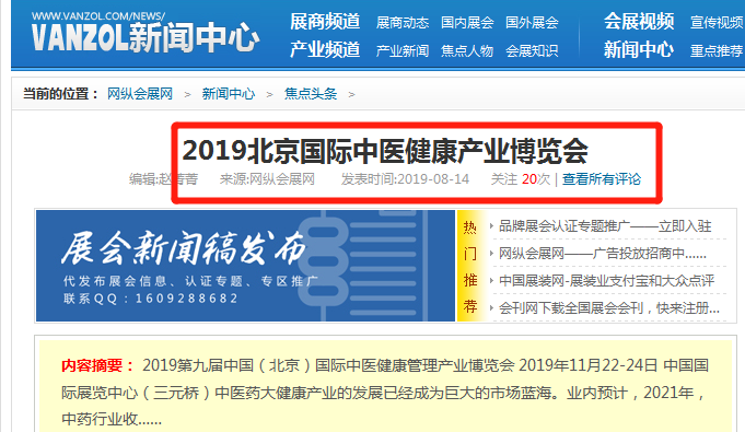 为适应行业的发展2019北京中医健康展将于2019年11月22日-24日在中国国际展览中心(三元桥)召开,将继续秉承以“弘扬国医精粹,传承中医文化”为主题,共同探讨中医健康发展新模式,促进“中医医疗、保健、科研、教育、产业、文化”六位一体全面协调发展,推动中医健康服务业各领域间相互融合与跨越发展。