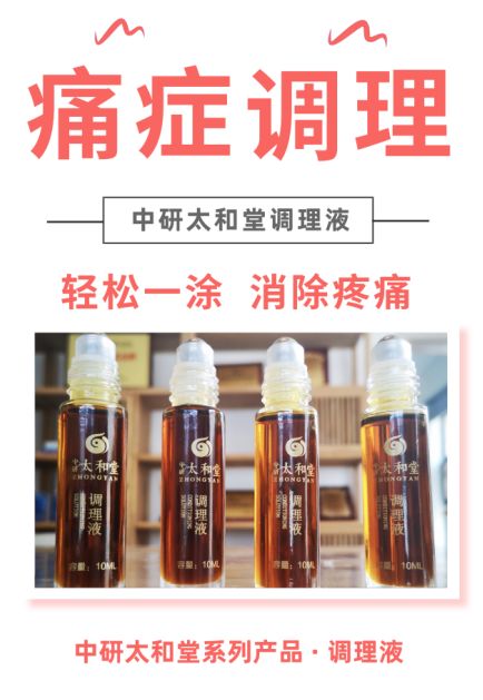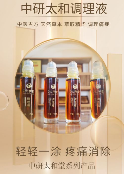 中研太和堂—太和调理液,是一款外用调理痛症的液体,本产品复方来自古方《外科传薪集》中的丁桂散,根据现代人的生活习惯及生理特点,按照中医君臣佐使配方原理,在研究中研究进行了古方加减。从而达到轻轻一涂,稍加调理方法,即可缓解疼痛,让身体倍感轻松,中医古方,天然草本,萃取精华,可调理多种痛症。